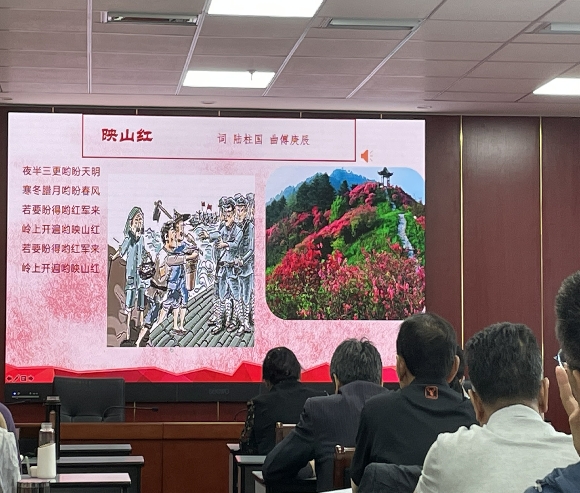 此次主题为《歌声中的党史》的特殊党课是由首都师范大学音乐学院教授、北京市人大代表、中国音乐家协会会员雷达教授精心准备的,他以音乐口述历史的形式,带领学员在歌声中重温100年中国共产党的峥嵘岁月。通过《唱支山歌给党听》《长征胜利》《走进新时代》《不忘初心》等一曲曲镌刻着时代标记的歌曲,深情回首中国共产党走过的百年奋斗路。通过“新生期”“奋斗期”“智与堑”“成熟期”四个篇章描述了党在各个时期的奋斗历程。
